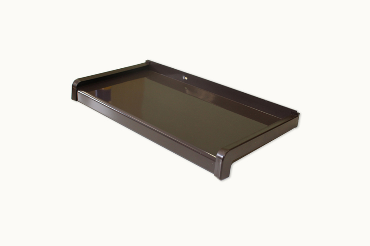 Venkovní parapety – Tažené (extrudované) hliníkové parapety jsou vysoce kvalitní a elegantní parapety. Vyrábějí se ze slitiny hliníku AlMgSi5 metodou vysokotlaké extruze (tzv. tažený profil). Vyznačují se především vysokou mechanickou odolností a prostorovou tuhostí, která usnadňuje montáž a zaručuje perfektní výsledný vzhled. Přední zaoblená hrana a ideální proporce dotváří architektonický detail každé fasády. Hodí se jak k dřevěným eurooknům tak i k plastovým oknům.