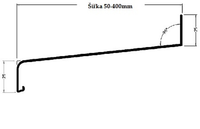 • výška zadního lemu: 25 mm (v zadním lemu jsou oválné dírky po cca 250 mm)