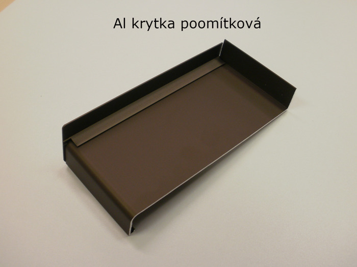Hliníková krytka PO omítce (montuje se PO omítce) Velikost: 50 – 400 mm Síla boku krytky je 2 mm. Šíře nosu z boku je 30 mm. Při zadávání celkové šíře parapetu je potřeba s tímto počítat.