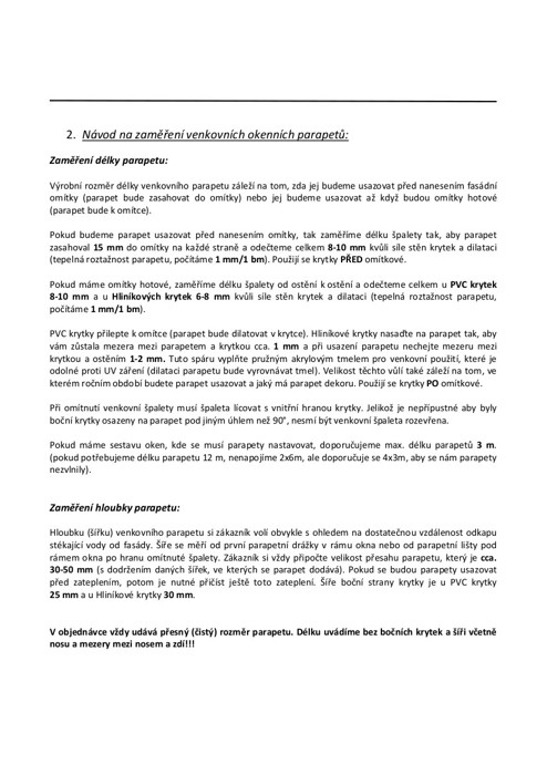 - plastové krytky v základních dekorech dodáváme originální (na každou šíři), nezkracujeme je, aby voda nezatékala pod okno